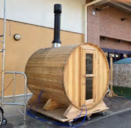 ⑵ 木製で円筒形の「バレル型サウナ」