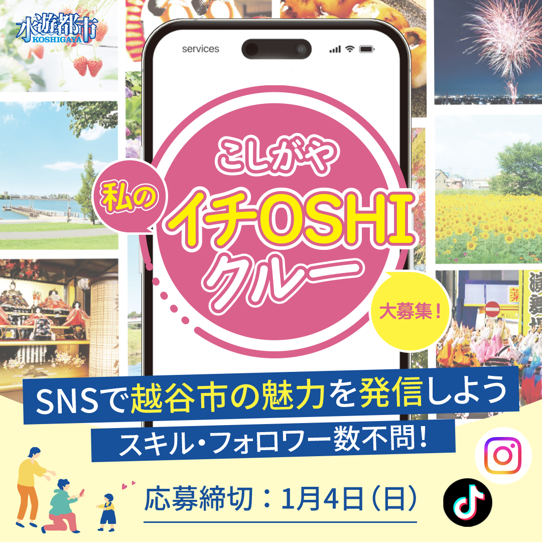 SNSを通じて越谷市の情報を発信し、地域の魅力を市内外に届けてくれる「こしがや私のイチOSHIクルー」を募集します!