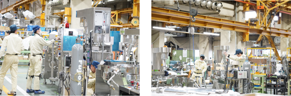 「より多くの人々に より美味しい幸せを」の基本理念を大切に、美味しさの影の立役者として日々の食を支えています。代表取締役社長の梶原さん、設計部の丸本さん、組立課の櫻井さんの3名に伺いました。