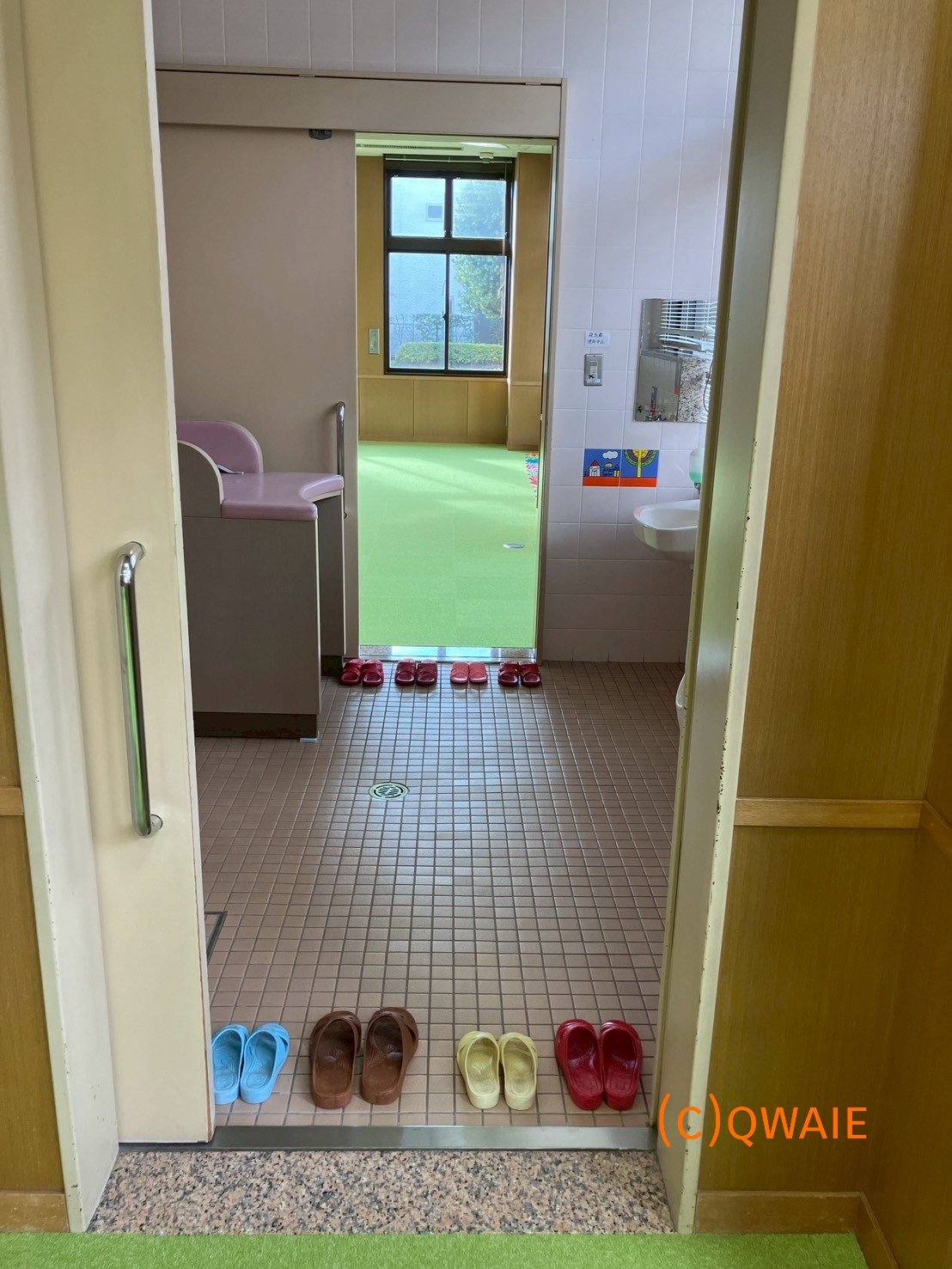 個室トイレ左側は洋式、右側は和式です。小学校入学前に和式の練習が出来ます。