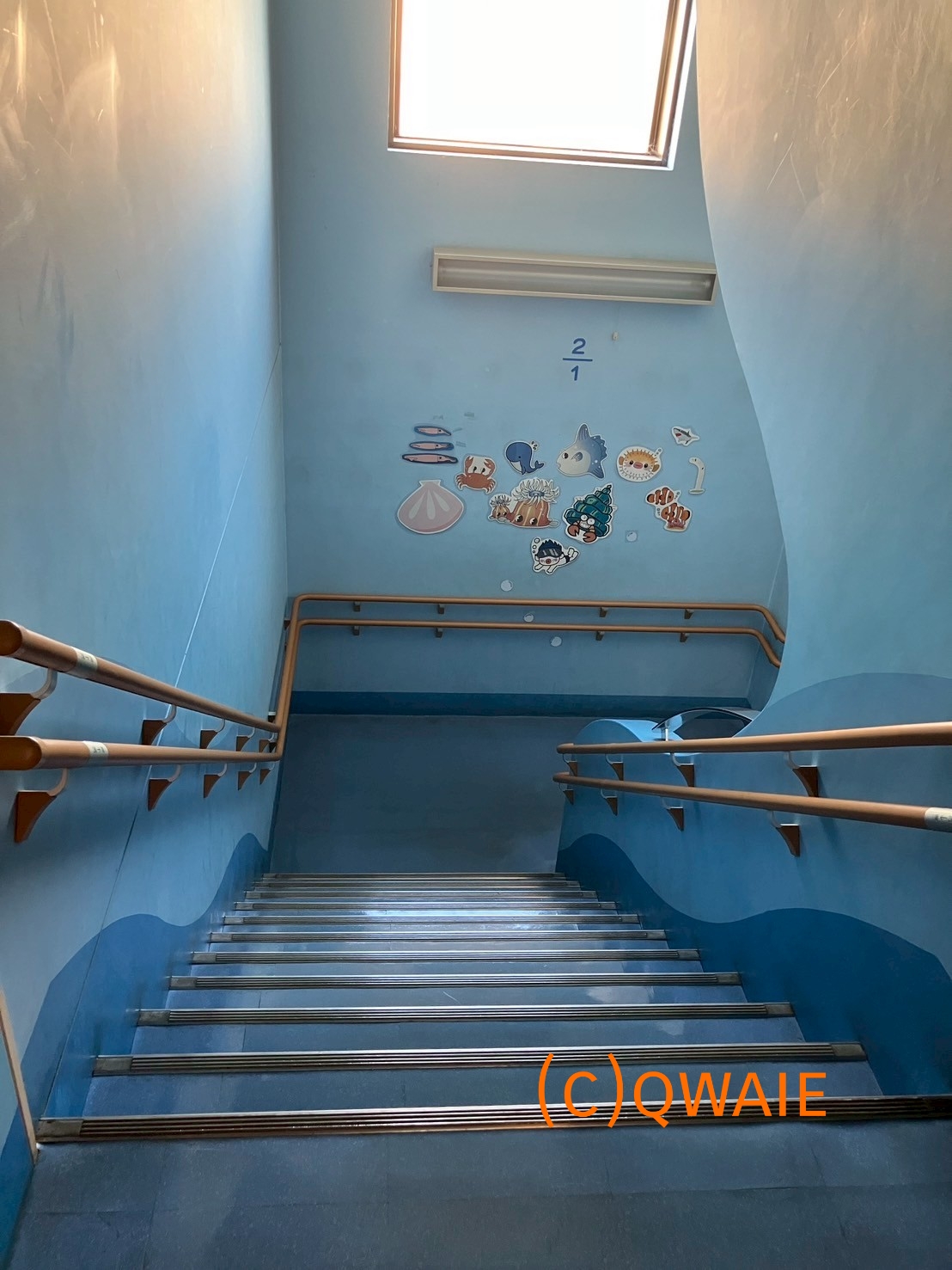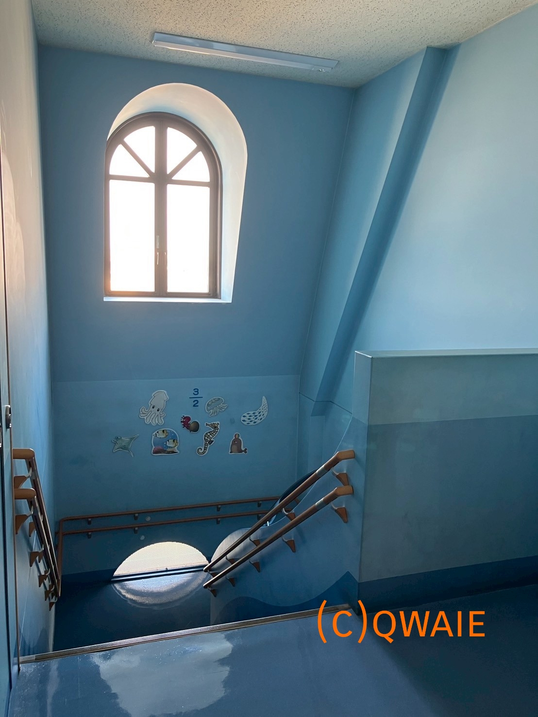 水色に塗られた壁の間を通ると海の中にいるみたいです。