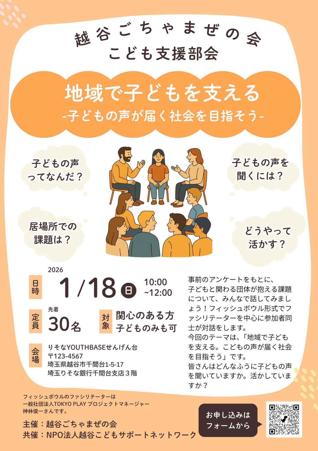 2026年1月18日(日曜日)・りそなYOUTHBASEせんげん台にて、越谷ごちゃまぜの会【こども支援部会】が開催されました。