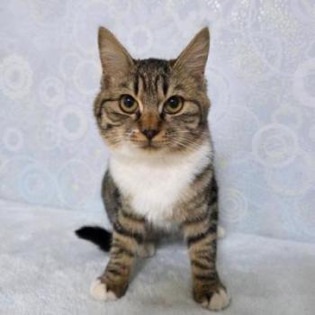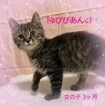 【びびあん】めす、3か月齢、まん丸顔のキジトラちゃん