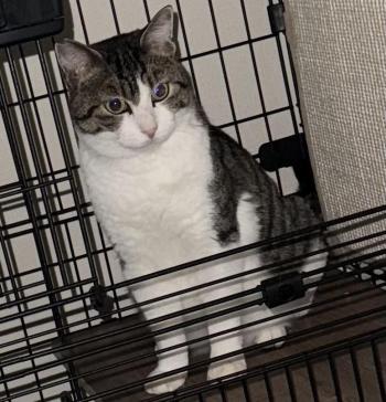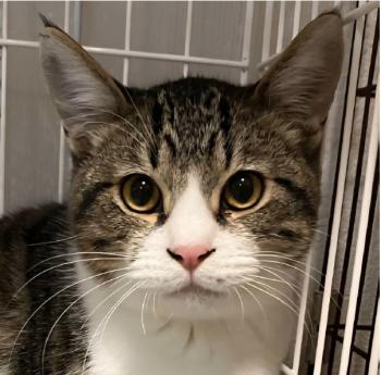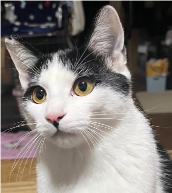 【ルビン】めす、5歳くらい、毛足が少し長めでフワフワ・手足短めのキジ白ちゃん