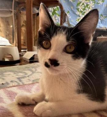 【アース】おす、3.5か月齢、少しハチワレの白黒くん