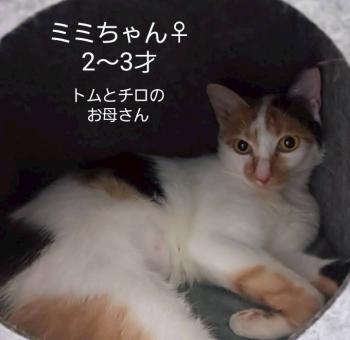 【ミミ】めす、2~3歳、人懐っこい三毛猫さん