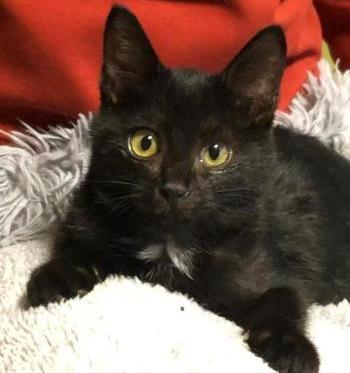 【文殊(もんじゅ)】おす、4~5か月、やんちゃで食欲旺盛・首とお腹に白ぽちのある黒猫くん