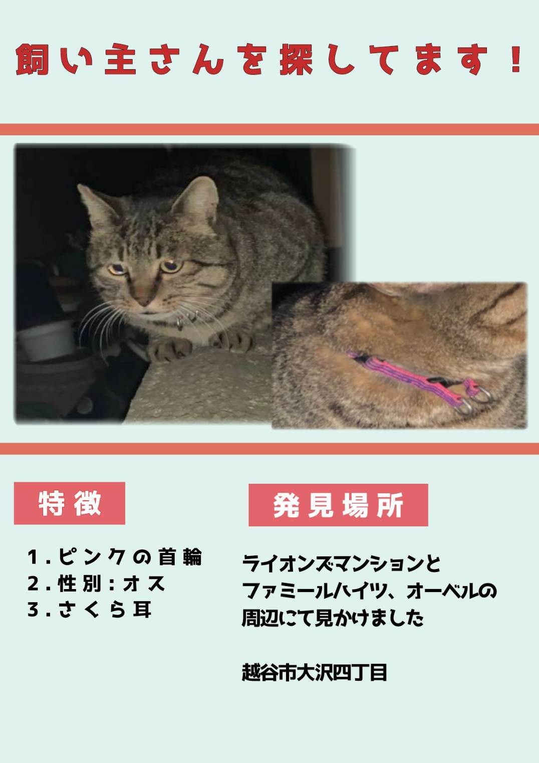 特徴:ピンク色の首輪あり