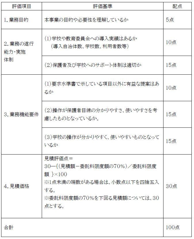越谷市学校徴収金管理システム業務事業者選定公募型プロポーザル審査結果