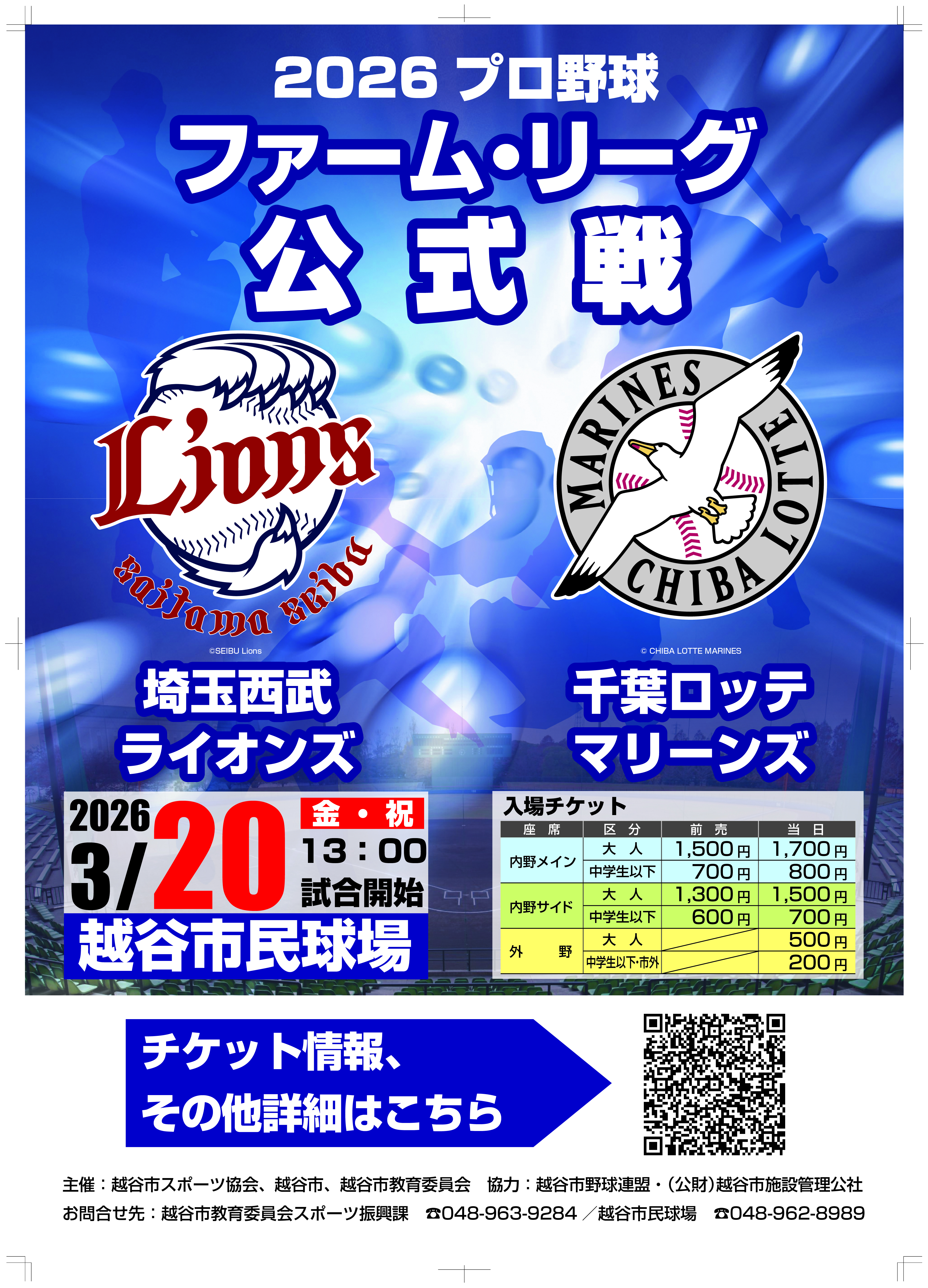 ■当日券は3月20日午前9時より越谷市民球場正面入口横の当日券売り場にてお買い求めください。