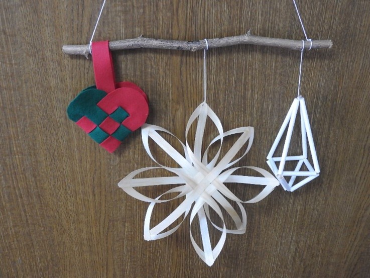 北欧調のオーナメント(経木のネーベルスロイド、紙ストローのヒンメリ、クリスマスハートなど)