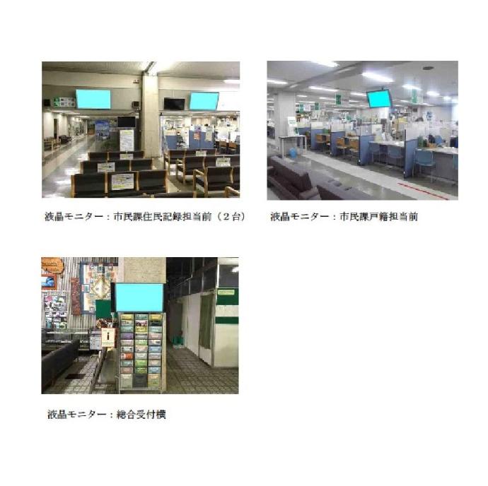 越谷市では、自主財源確保、行政情報の放映による市民サービスの向上、及び、地域経済の活性化を目的として、本庁舎等に液晶モニターを設置し、市役所からのお知らせや広告を放映します。