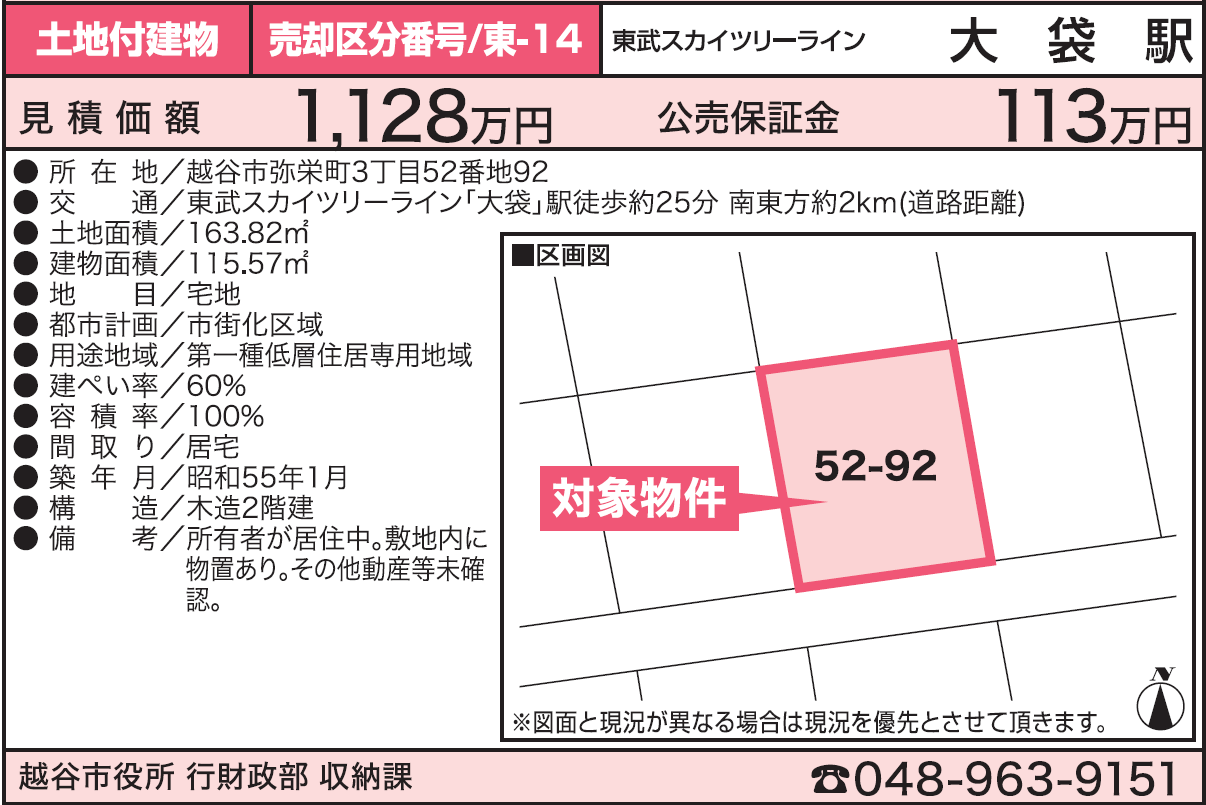 【区分番号東ー14】埼玉県越谷市弥栄町3丁目52番地92