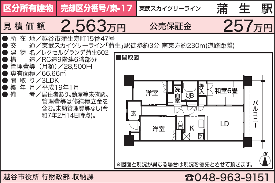 【区分番号東ー17】埼玉県越谷市蒲生寿町15番47号