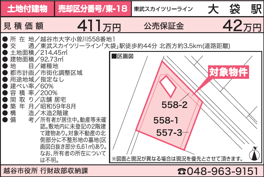 【区分番号東ー18】埼玉県越谷市大字小曽川558番地1