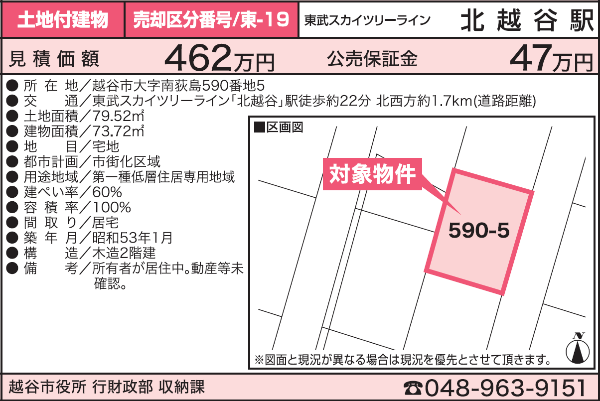 【区分番号東ー19】埼玉県越谷市大字南荻島590番地5