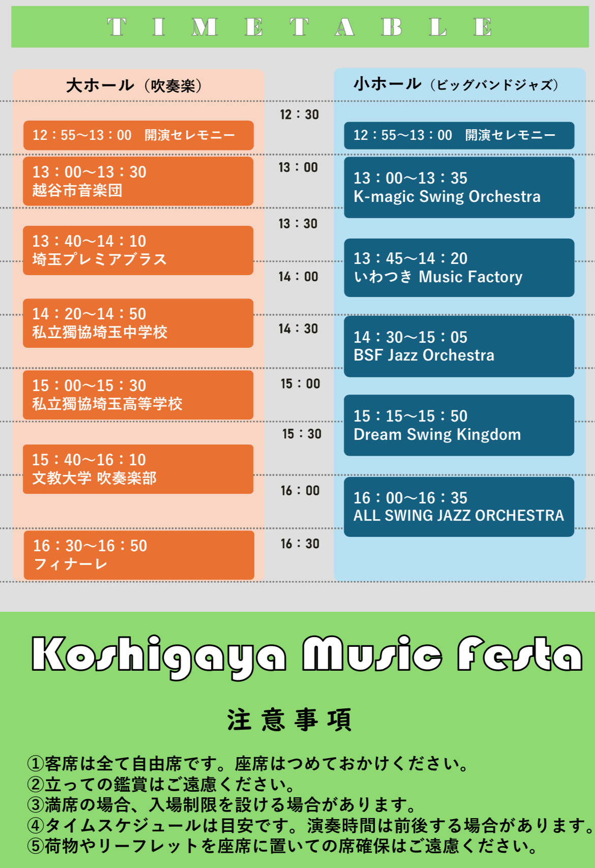 ※演奏時間は、前後する場合がございます。タイムスケジュールはあくまでも目安とお考えください。