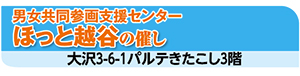 ![]() 特に記載のない場合、 ■参加費:無料、 ■会場・申込み・問合せ:市民活動支援センター「ななサポこしがや」 TEL 048-969-2750 ■ぽっぽひろば ■日時:2月22日(火曜日)、10:00~11:10 ■内容:絵本や紙芝居、体操、手遊びなど、子育て交流サロン ■対象:乳幼児と保護者15組 ■「3分プレゼンでつながろう!」発表者・観覧者募集 ■日時:2月19日(土曜日)、13:30~15:00 ■内容:仲間を増やしたい公益活動団体から、経験・スキルを生かして地域で活動したい方へ向けた活動PR ■対象:▽発表者…市民活動団体、地域貢献活動を行う企業および個人15人 ▽観覧者…市民活動やボランティア活動を始めたい方、内容に関心のある方30人■申込み:メール(Eメールinfo@koshigaya- activity-support.info)に氏名・電話番号・団体名を記入して市民活動支援センター「ななサポこしがや」へ。そのほか直接または電話、ファクス(ファクス 048-969-2751)でも受け付けます *詳しくは右記の二次元コードからホームページをご覧ください ■「第5回新派つるし雛inななサポ」作品募集 2月14日(月曜日)~3月3日(木曜日)の展示期間中に観覧者による投票を行い、選ばれた作品は2月27日(日曜日)のひなまつりイベントで表彰します。 ■申込み:2月12日(土曜日)までに、直接市民活動支援センター「ななサポこしがや」へ(作品は2m以内。なま物、危険な物、壊れやすい物等は受け付けできません) ■CafeTOMO「どんな時代が来ても元気に生き抜くための子育てあんなことこんなこと」 ■日時:2月26日(土曜日)、10:00~11:30 ■内容:グループトーク「子育てって何?」、活動の紹介など ■対象:子育て中の方、子育てに関心のある方20人 ![]() 特に記載のない場合、 ■参加費:無料、 ■会場・申込み・問合せ:男女共同参画支援センター「ほっと越谷」 TEL 048-970-7411(月曜日、祝日休所)、ファクス 048-970-7412、HPhttps://hot- koshigaya.jp/ ■ブックフェア「いま読んでみたい本! 韓国フェミニズムをめぐって」 ■日程:2月19日(土曜日)~3月20日(日曜日) ■内容:韓国フェミニズムをめぐる小説やエッセイの展示 ■「国際女性デー」パネル展示 ■日程:3月4日(金曜日)~11日(金曜日) ■会場:市役所本庁舎1階ロビー ■内容:ジェンダーギャップ指数を地図やグラフなどで展示 ■「ほっと越谷」さんもくナイト・手仕事でほっこり ■日時:2月17日(木曜日)、18:30~20:00 ■内容:ドライフラワーや布を使ったアクセサリー作り |