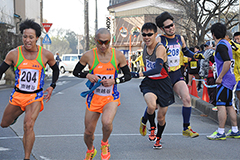 各チームのランナーたちは、全長27・7キロのコースを6区間に分かれて力走。第1中継地点の大袋中学校正門前では、たすきを渡したランナーが息を切らせて道路に倒れ込む姿も見られました。