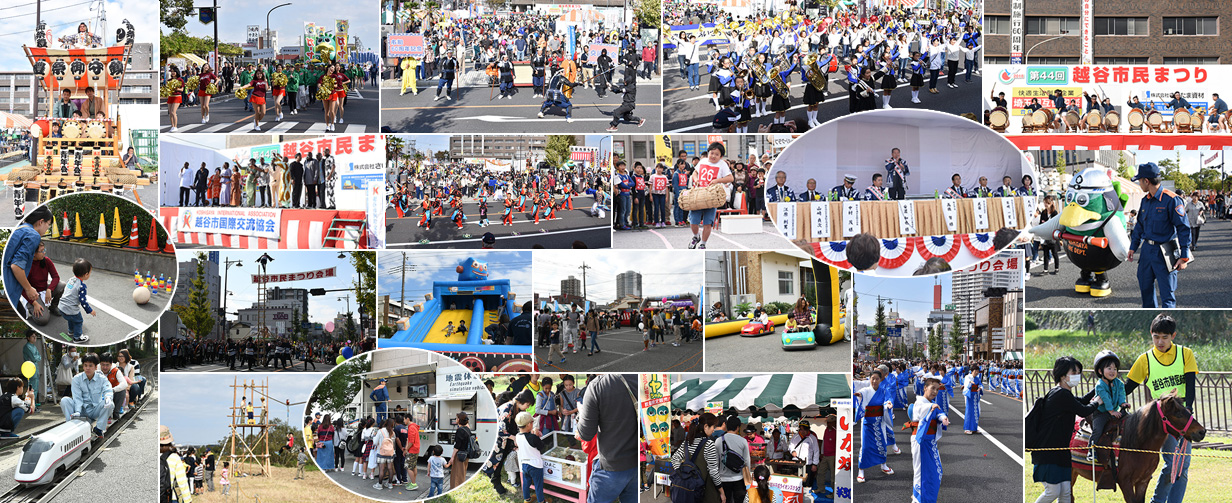 「越谷市民まつり」は、多くの皆さんのご協力を得て、10月28日に開催することができました。オープニングパレードや各種イベントなどを写真で振り返るとともに、ご協賛いただいた方をご紹介します。