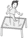 【内容】トランポリン台を使用して、小学生~一般を対象に、垂直跳びや二分の一ひねり跳び腰落ちなどの基本種目を体験(必ず靴下着用)