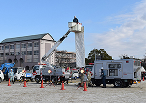 | 高所作業車によるライフライン 復旧訓練も見学できます |